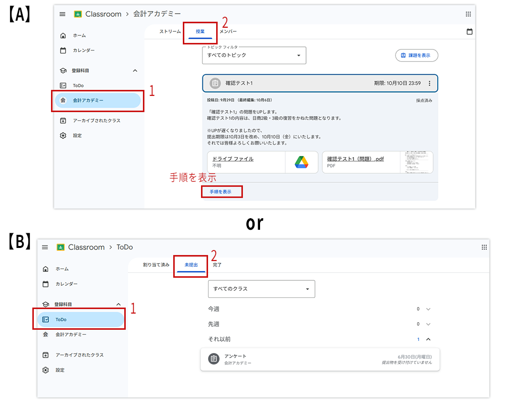 ④クラスルームの画面に戻り、課題提出画面 右上の